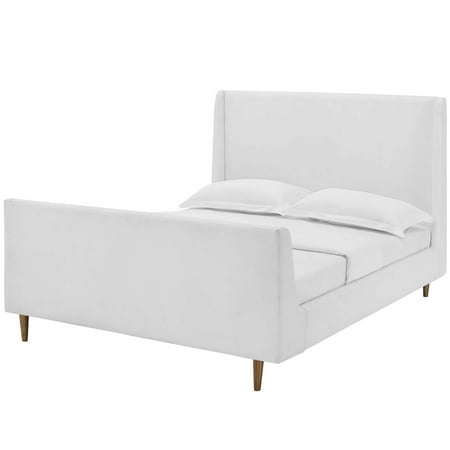Modern Contemporary Urban Design Bedroom Queen Size Platform Bed Frame Fabric White