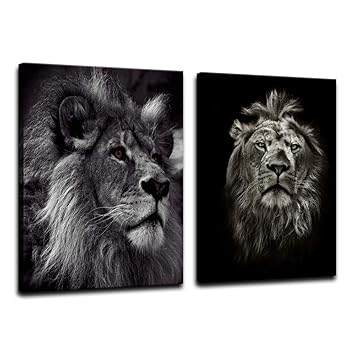 Yatsen Bridge 2 Piece Printed Posters And Prints Black White Animal Lion Picture Monochromatic Photo Wall Art Painting On Canvas For Living Room Home